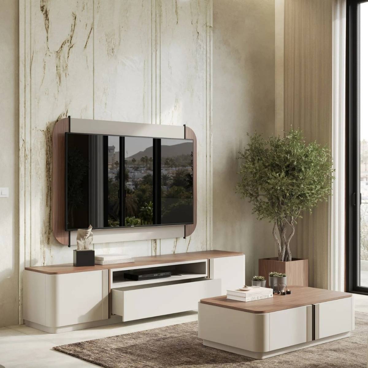 Estante composta por base tv e painel tv