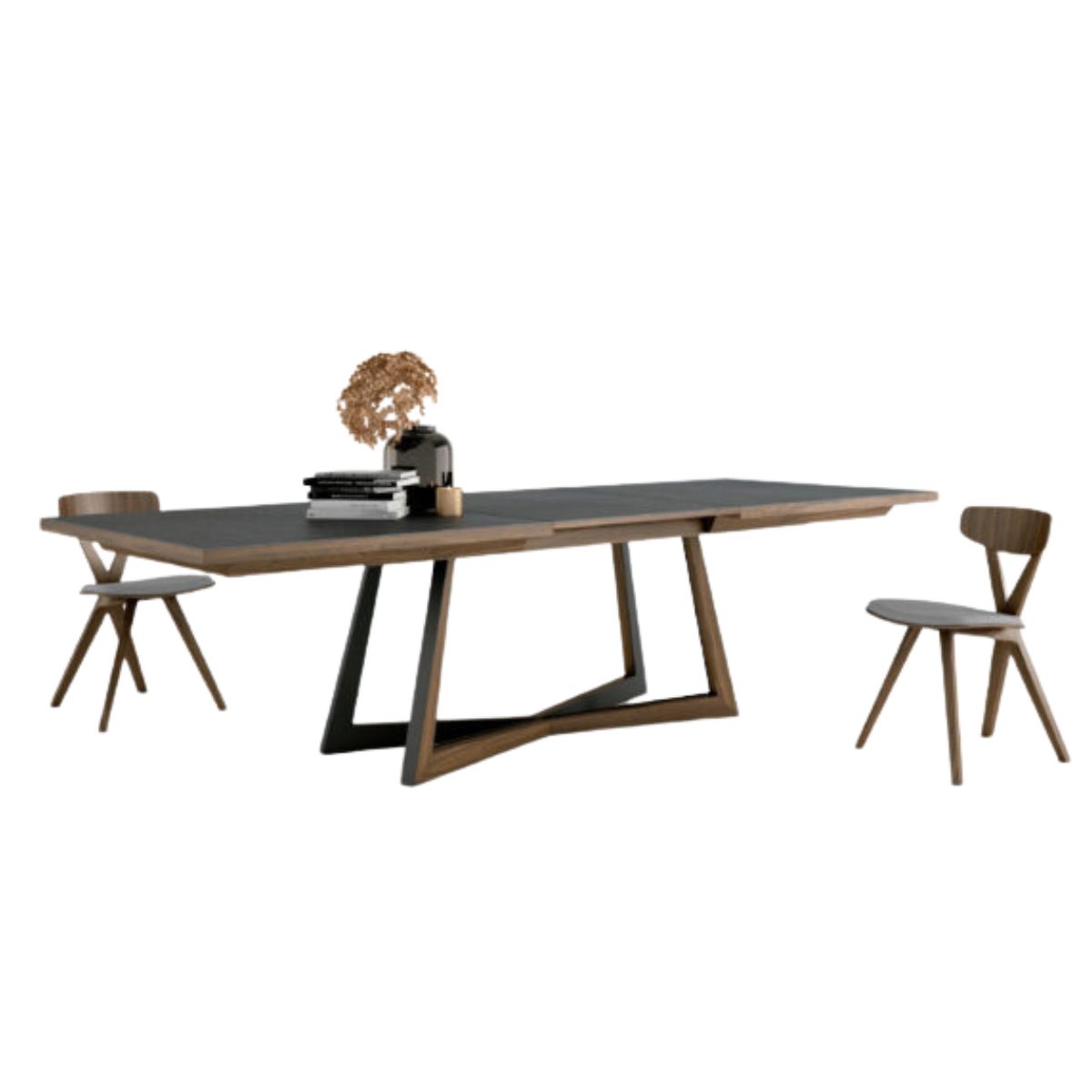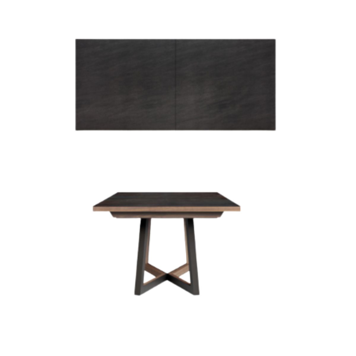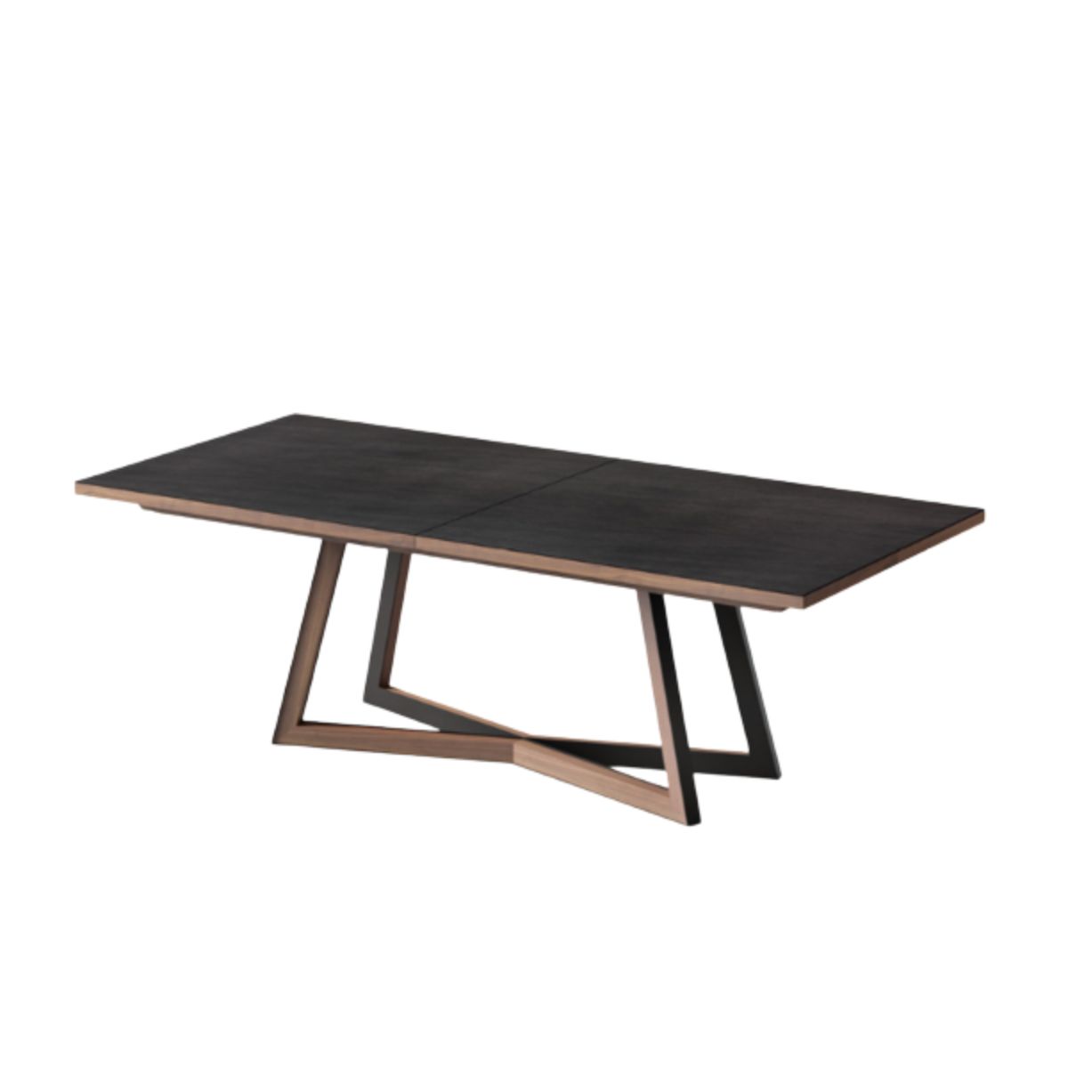 Acabamento: Pé metálico, tampo em cerâmica com nogueira